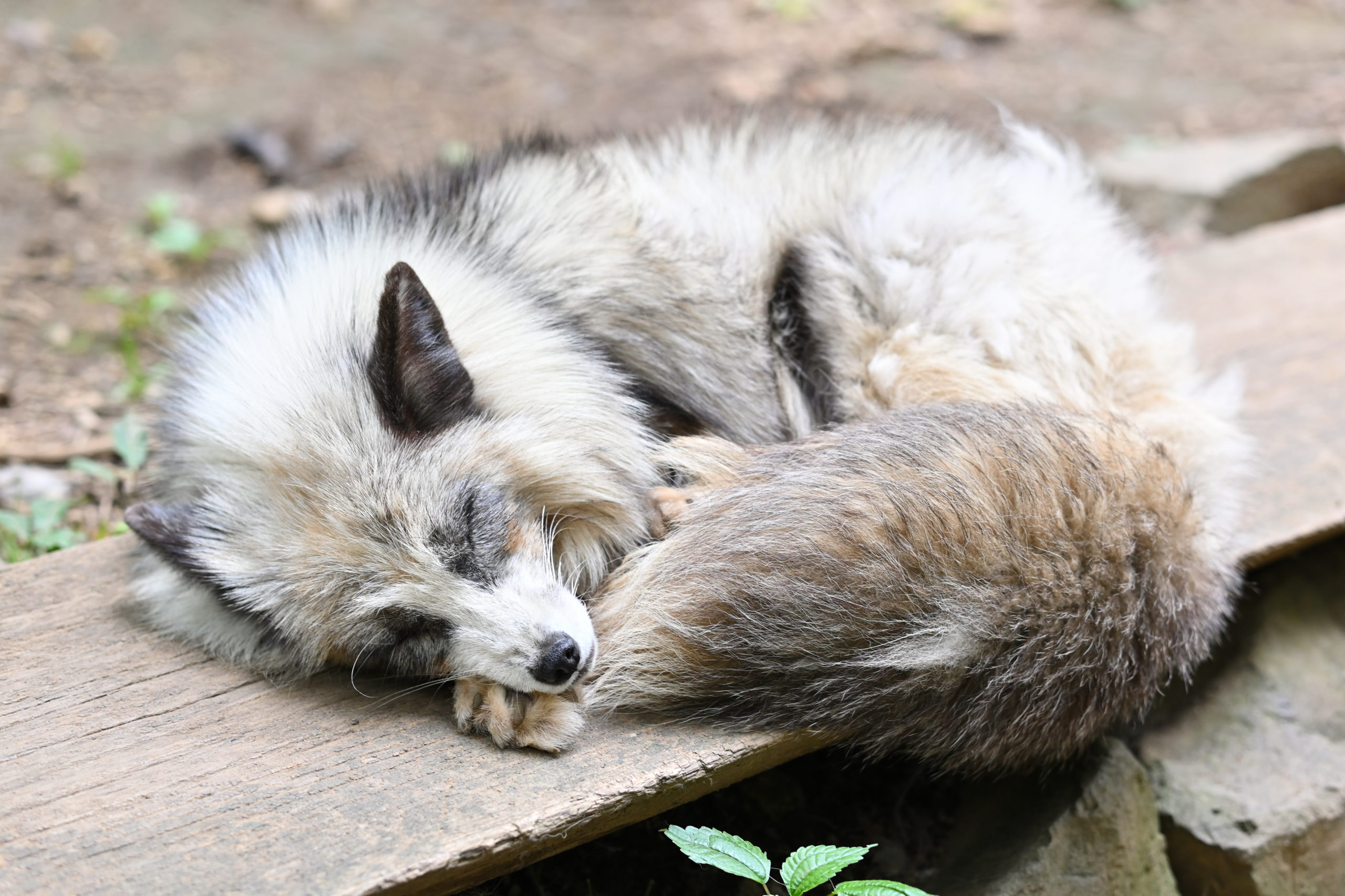 園内では、放し飼いされたキツネ達が、散歩していたり、眠っていたりと自由に過ごしていました。