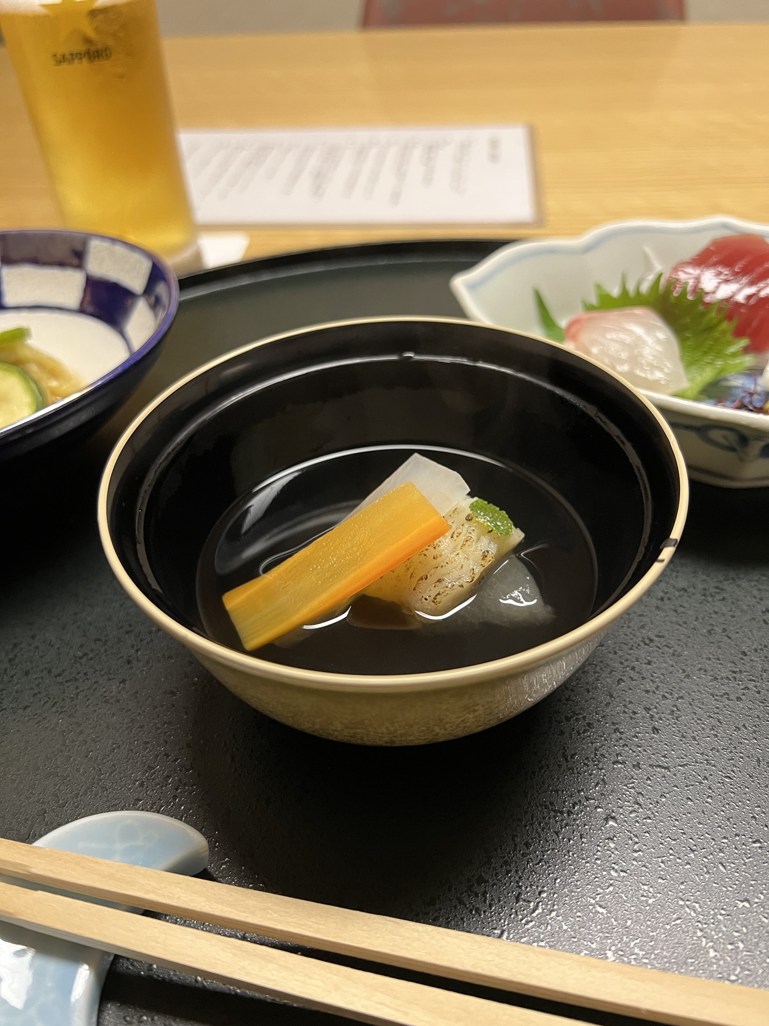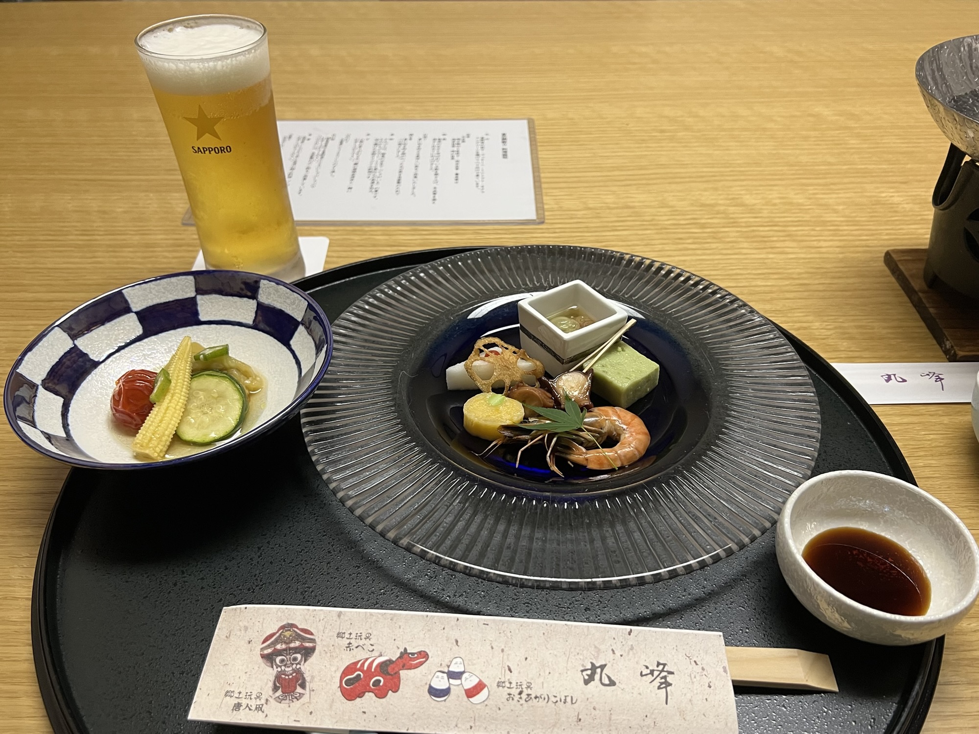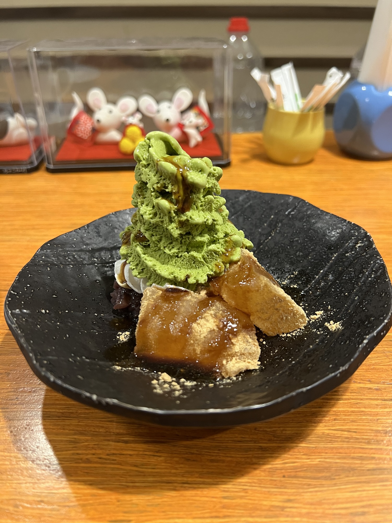 食後のデザートとして、わらびもちぜんざいをゆっくりと味わう時間は、旅の贅沢な瞬間でした。