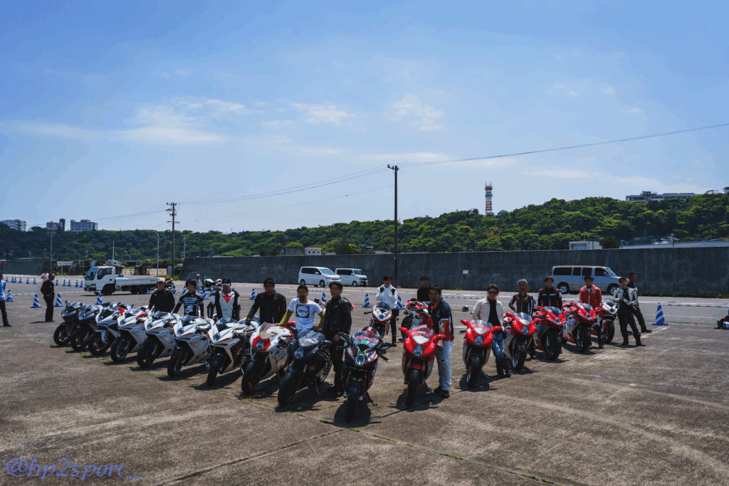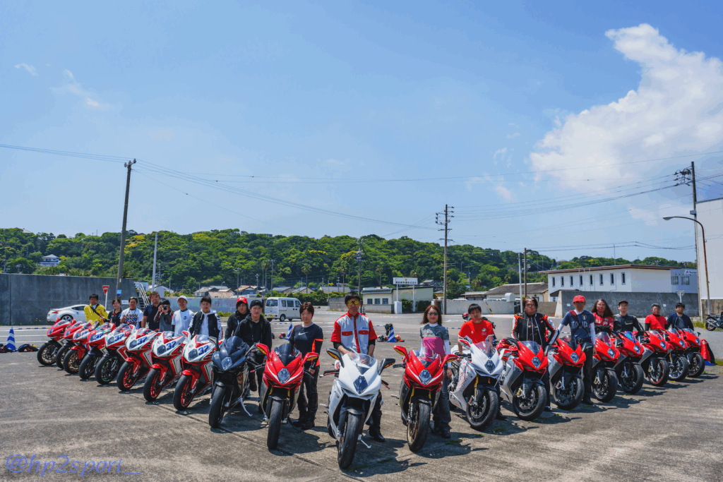 把握していたアグスタオーナーが揃ったところで、車種別に整列して記念撮影を実施。